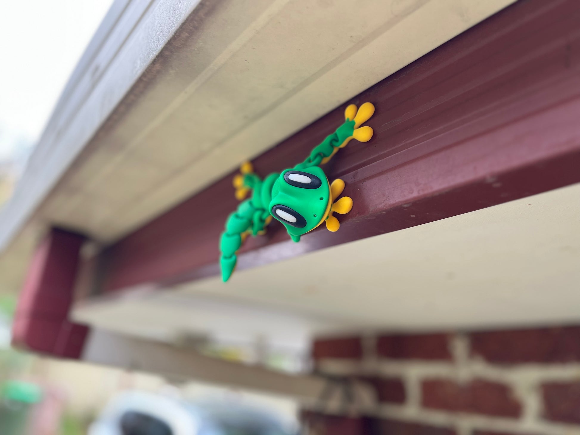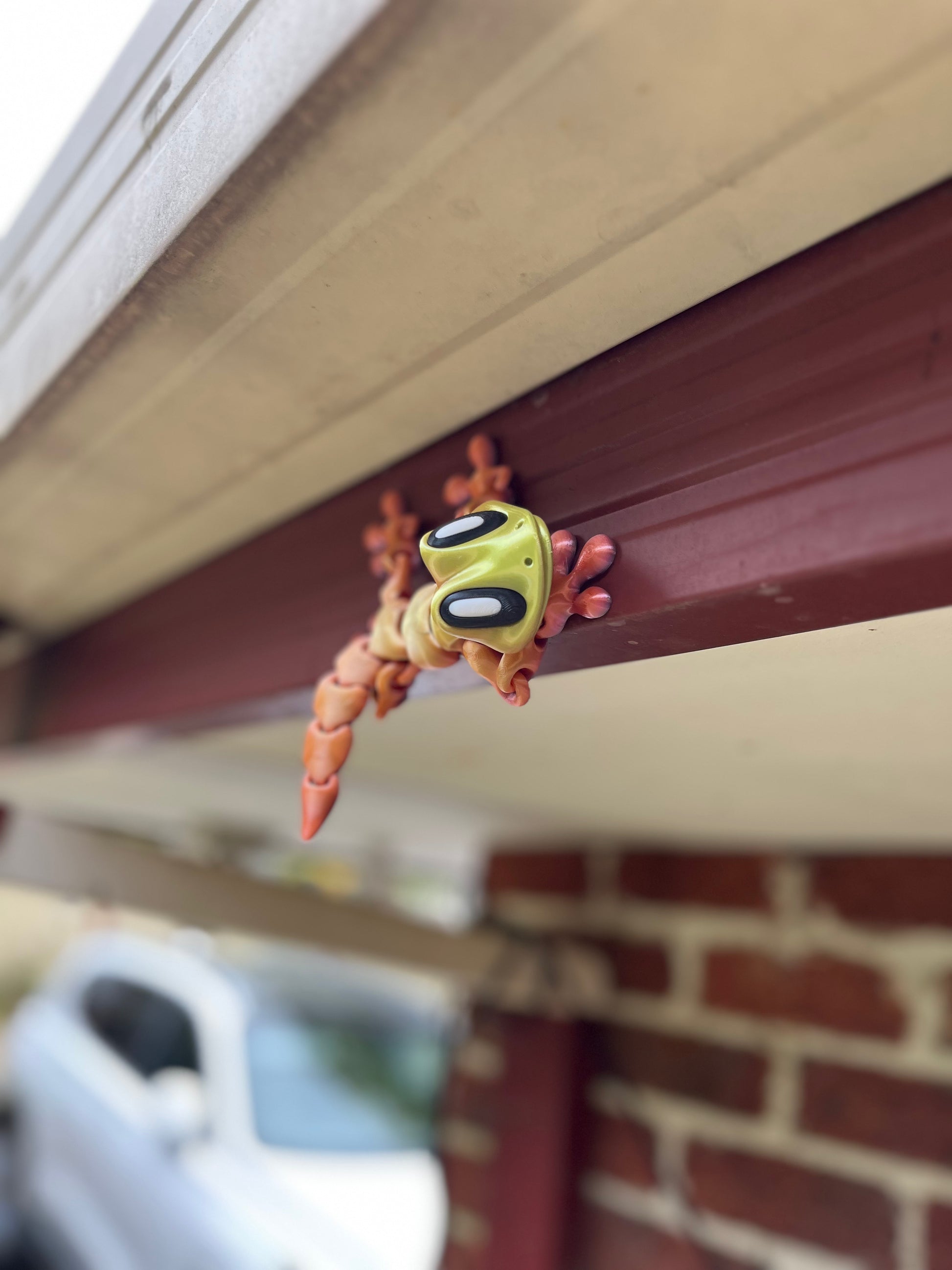 Cheeky, clingy, and totally flexable. Perfect for hanging on shelves, pot plants or scaling our fridge like a little miniature ninja. Printed in one piece with flexi limbs and exaggerated sticky magnetic feet, this little climber is made for action.